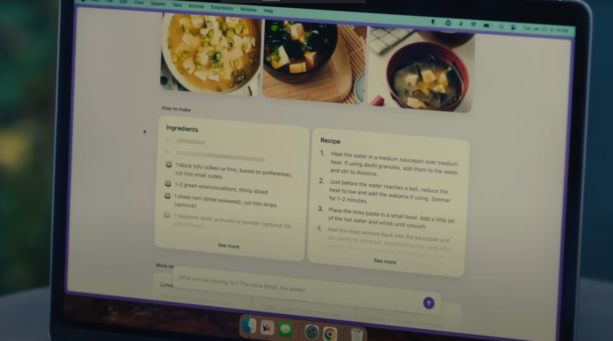 Exemple : vous cherchez une recette. Avec Arc, plus besoin d’éplucher 10 sites illisibles truffés de popups et de liens SEO. Le navigateur analyse des milliers de sites web et vous génère une page sur-mesure, formatée dans un style très lisible ✨