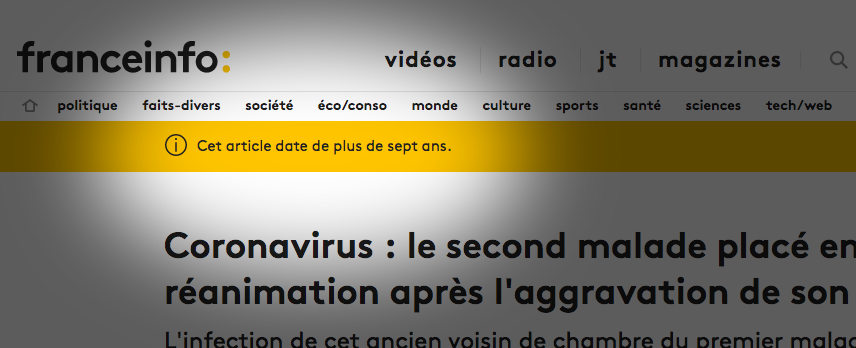 Cela est valable sur les sites d’information, où il s’avère important d’étiqueter les archives automatiquement après un certain temps. C’est ce que fait The Guardian au-delà de six mois, avec un message jaune très visible en haut des articles. En France, Franceinfo a repris l’idée.