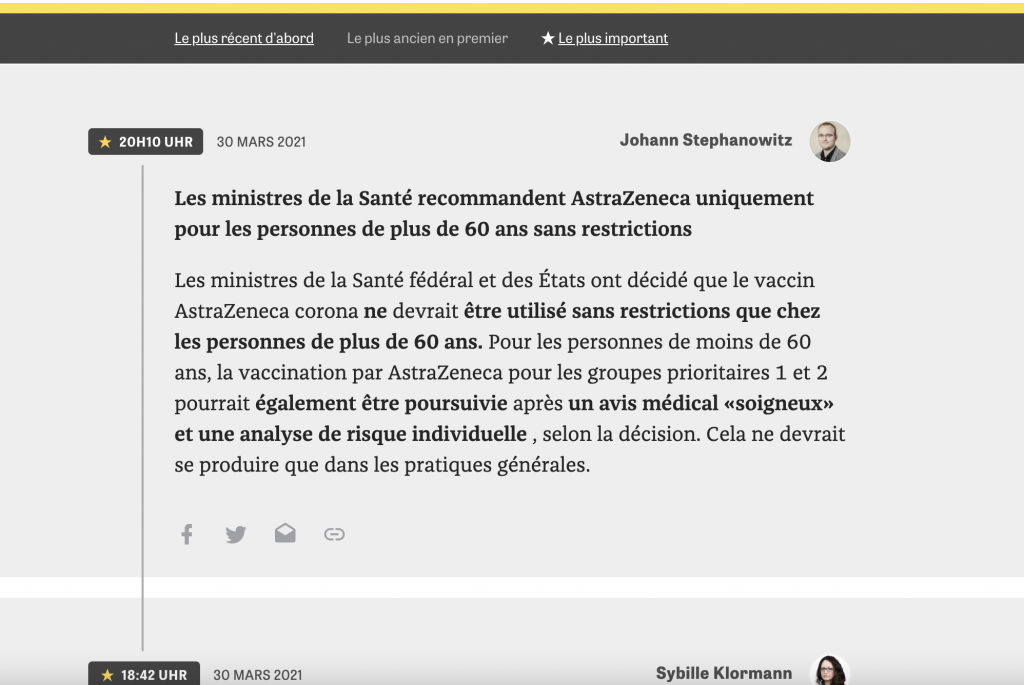 Le média allemand Die Zeit propose une autre astuce pour faire le tri : pouvoir filtrer en un clic les mises à jour les plus importantes du live.