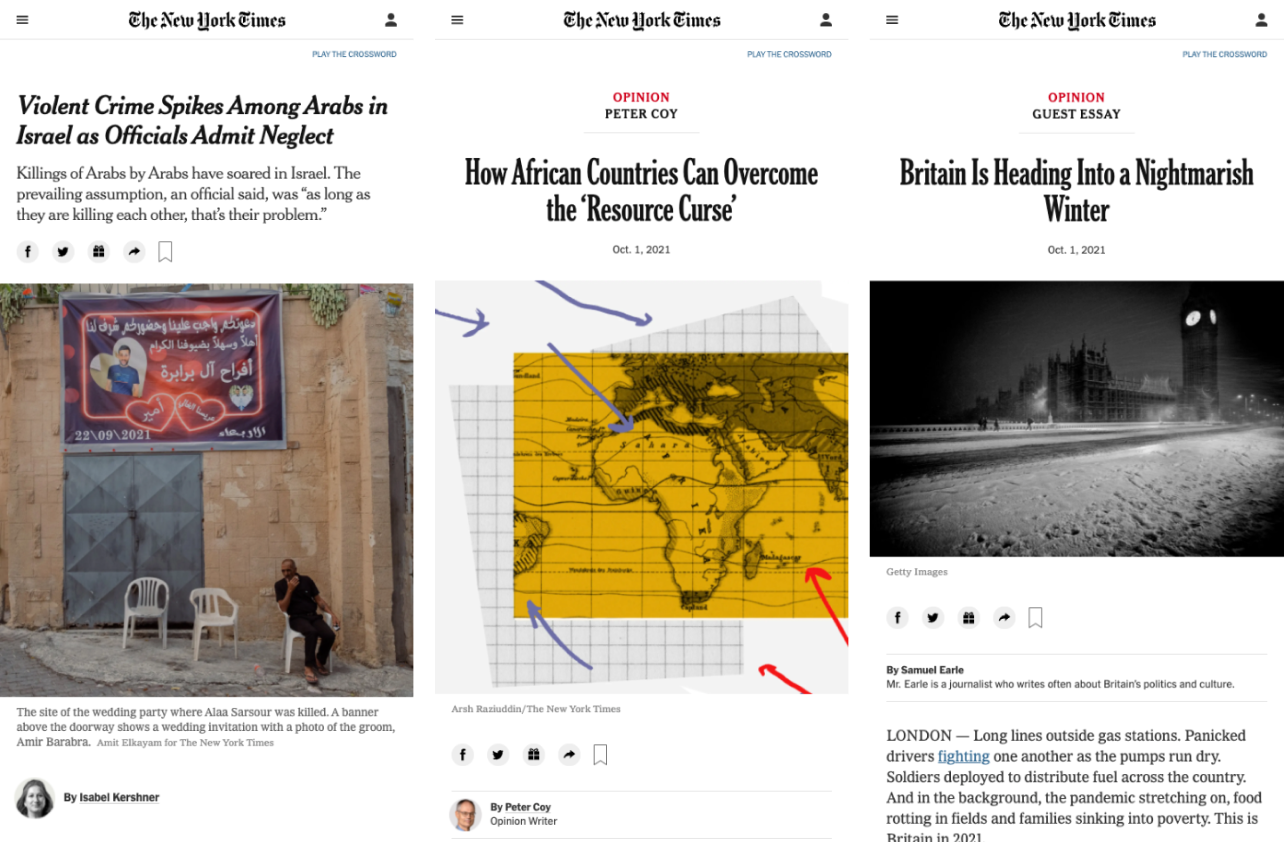 Au New York Times, les pages Opinion ont récemment été redesignées afin de mieux communiquer aux lecteurs ces différences fondamentales. Le terme "Opinion" est désormais en rouge, avec le nom de l'auteur très visible. Lorsque le contributeur est externe, le journal adopte désormais le terme "Guest Essay", qui renvoie à la notion d'invité. Un changement en apparence anodin mais qui serait mieux compris par les lecteurs, selon les recherches du Times.