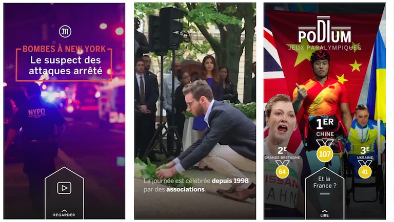 Les réseaux sociaux peuvent aussi être un terrain de jeu intéressant, à condition d’être prêt à diffuser gratuitement des contenus substantiels. Depuis quelques années, certains médias créent ainsi des mini-éditions sur Snapchat Discover, qui peuvent s’apparenter à des JT verticaux, à l’instar du Monde.
