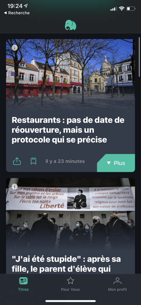 C’est ce que fait très bien l’application norvégienne Peil, lancée par le vieux quotidien VG. Elle s’inspire du format omniprésent « Stories » avec des mini-histoires en images et une navigation simple. Faites glisser de haut en bas pour consulter les sujets du jour ; faites glisser de droite à gauche pour en savoir plus sur une histoire. Chaque sujet est traité en quelques « cards » et c’est très efficace.