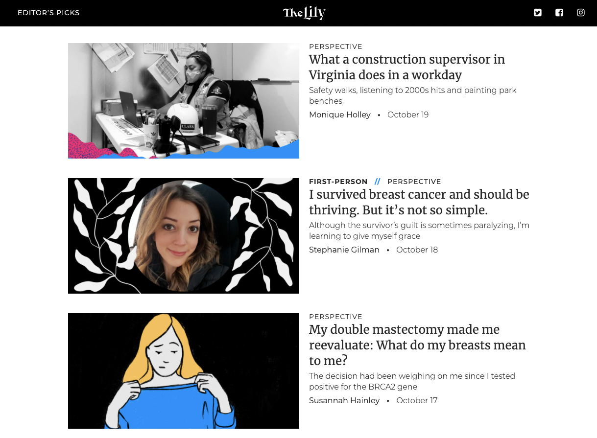 Certains éditeurs en font un vrai aspect distinctif, comme Axios ou The Lily, la verticale du Washington Post dédiée aux jeunes femmes. Ces deux médias ont popularisé le principe des collages photo très tape-à-l'oeil, avec une vraie « patte » reconnaissable.