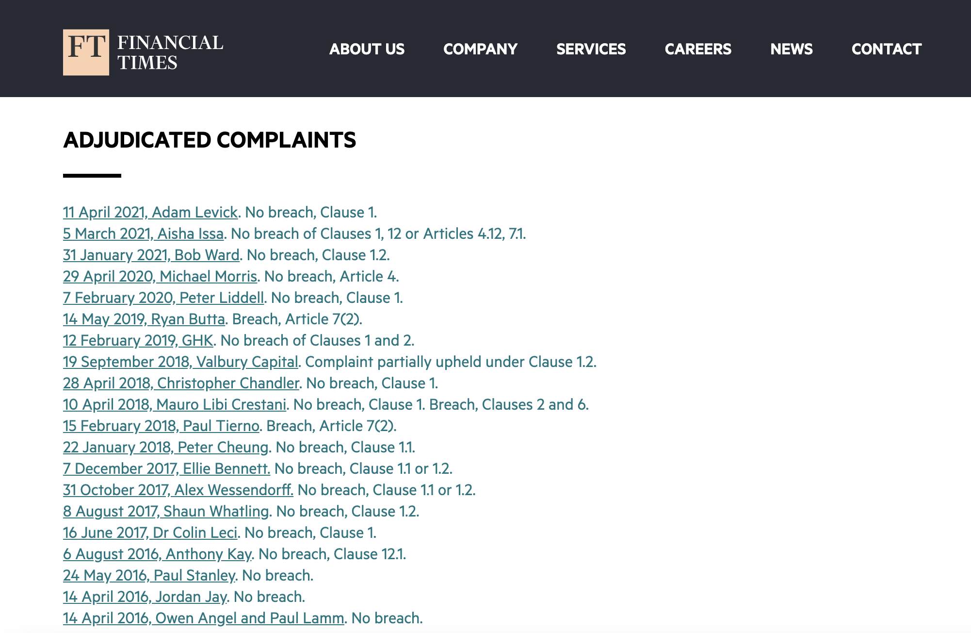 De son côté, le Financial Times se veut totalement indépendant et missionne un avocat depuis 2014 pour instruire toute infraction à son « Editorial Code ». Chaque décision est rigoureusement publiée sur le site (corporate) du journal et les recommandations s’imposent théoriquement à la rédaction.