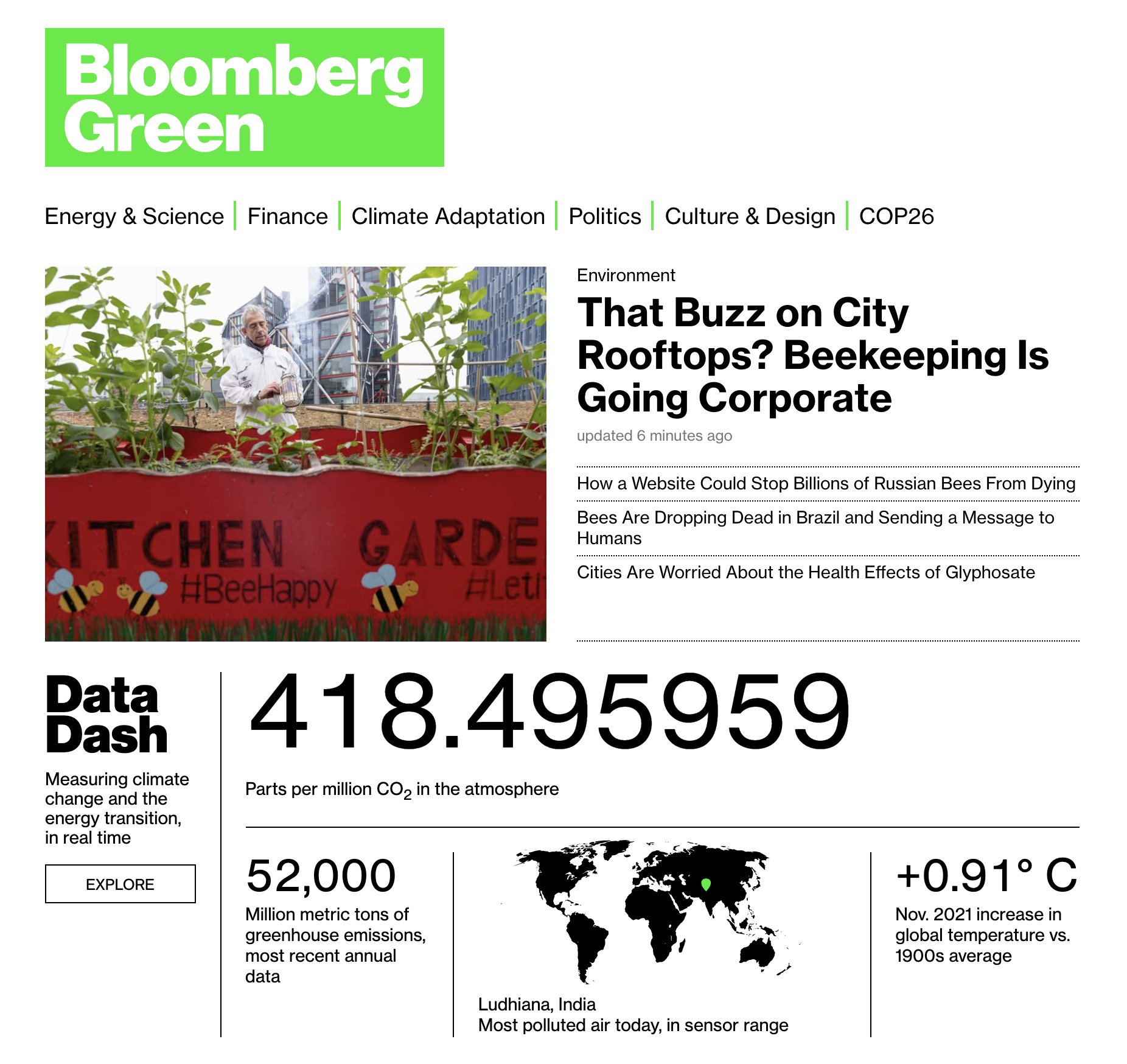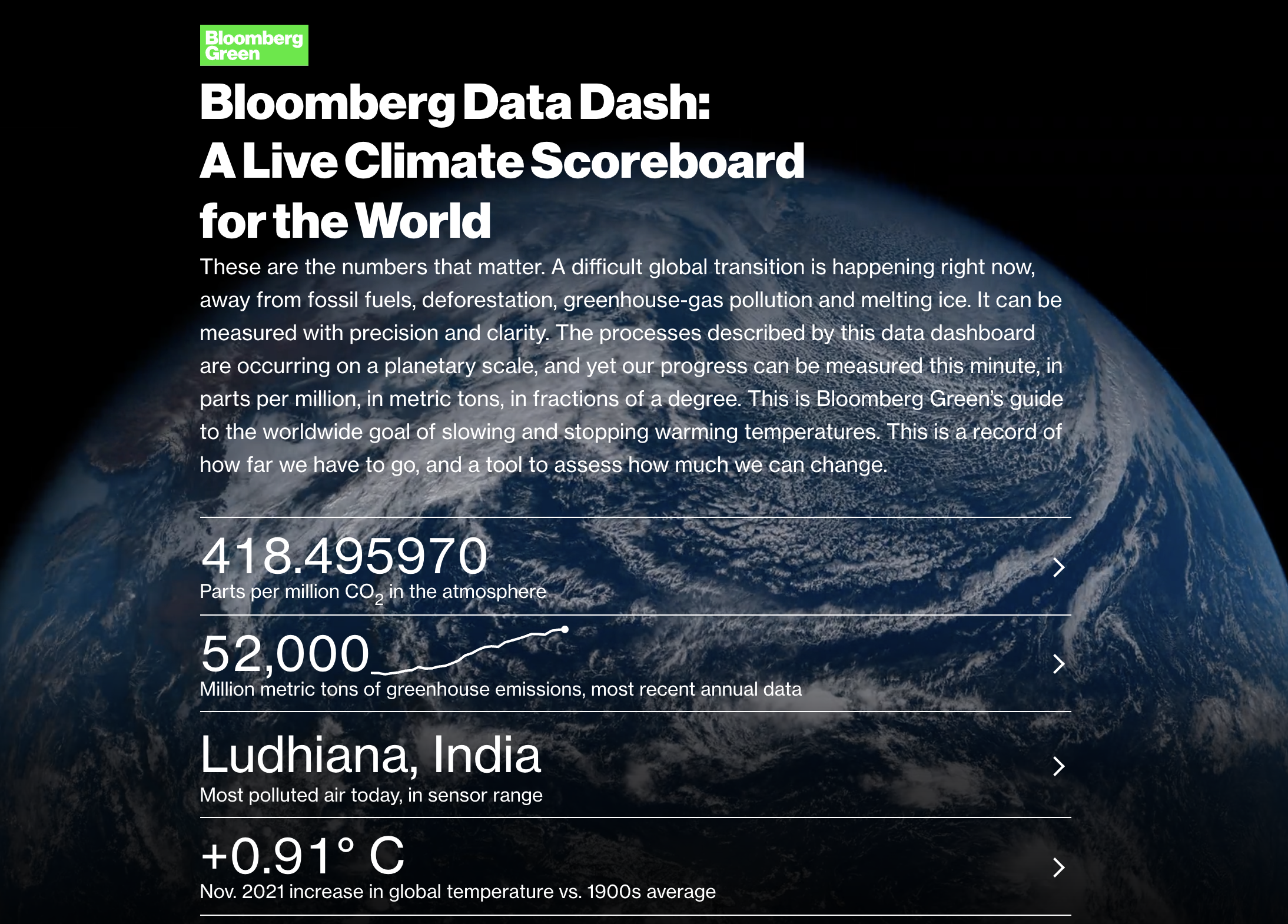 Le site Bloomberg Green dispose lui d’un dashboard complet, annoncé comme « en temps réel ».