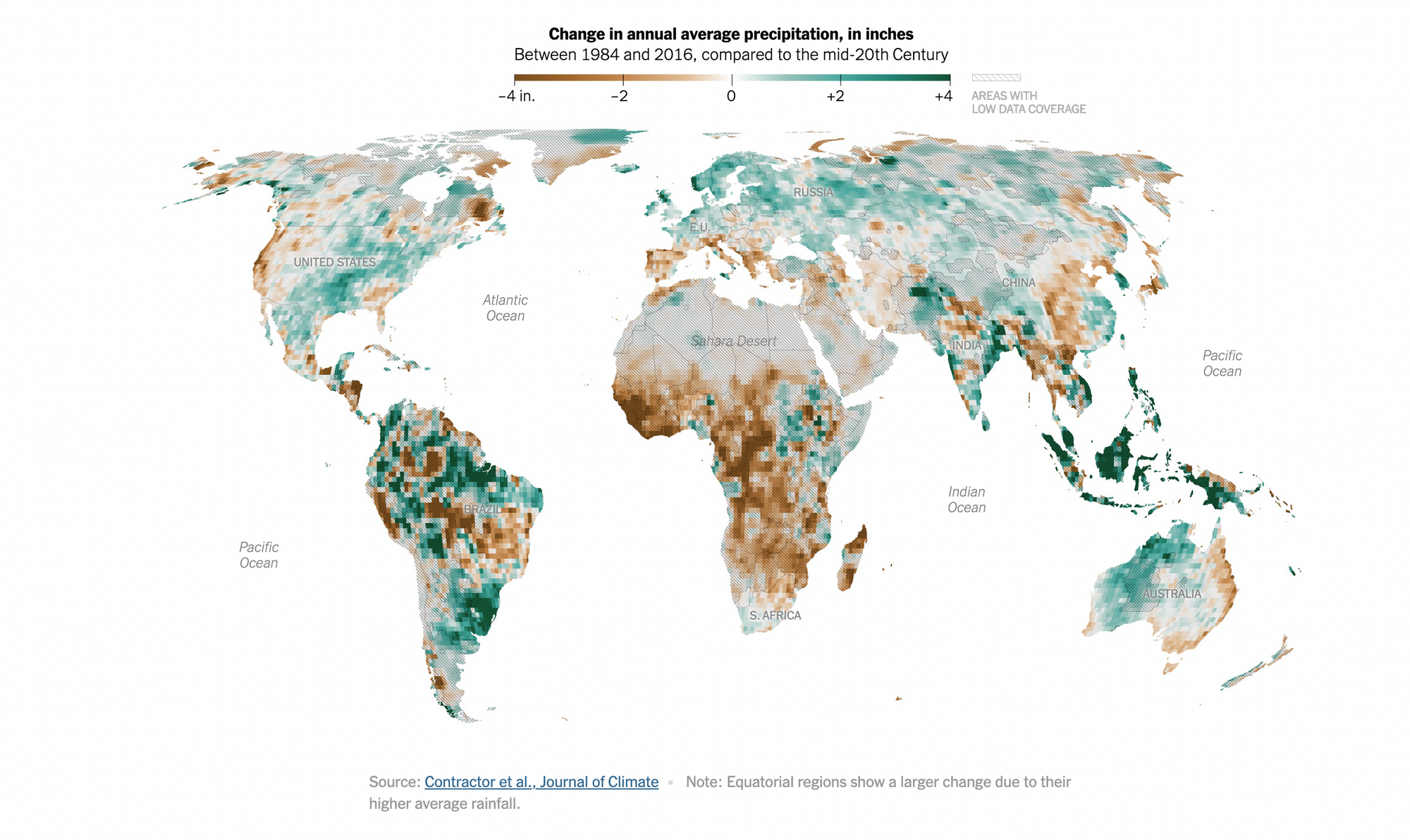 Le New York Times retrace aussi l’évolution des précipitations avec cette carte parlante.
